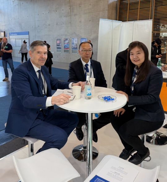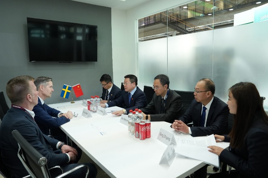 Möte med CSSC (PERIC:s moderbolag och världens största fartygsbyggare) management och PERIC under Hannovermässan i april 2025. Tvåa från höger i bilden till vänster samt i mitten på bilden till höger syns PERIC:s styrelseordförande Mr. Zhigang Gong.
